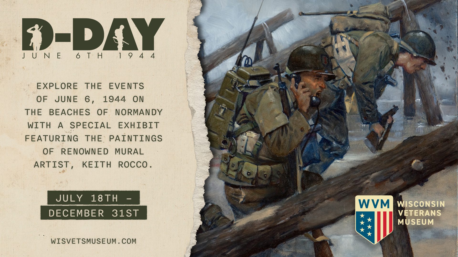 The D-Day exhibit features paintings from master of the historical narrative, Ketih Rocco. Four dioramas show with stunning detail the struggle and strife on the beaches of Normandy. Paired with stories and artifacts of Wisconsin men who survived the D-Day invasions, this exhibit poignantly presents the battles from the perspective of the soldiers, sailors, and airmen who were there.